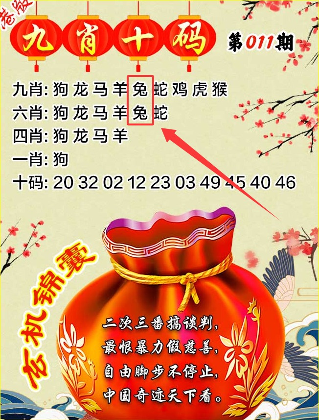 011期藏宝图:【干戈偃息岁丰穰】 浅解:岁丰穰,解鸡虎羊兔蛇龙 综合解肖:鸡虎羊兔蛇龙 |